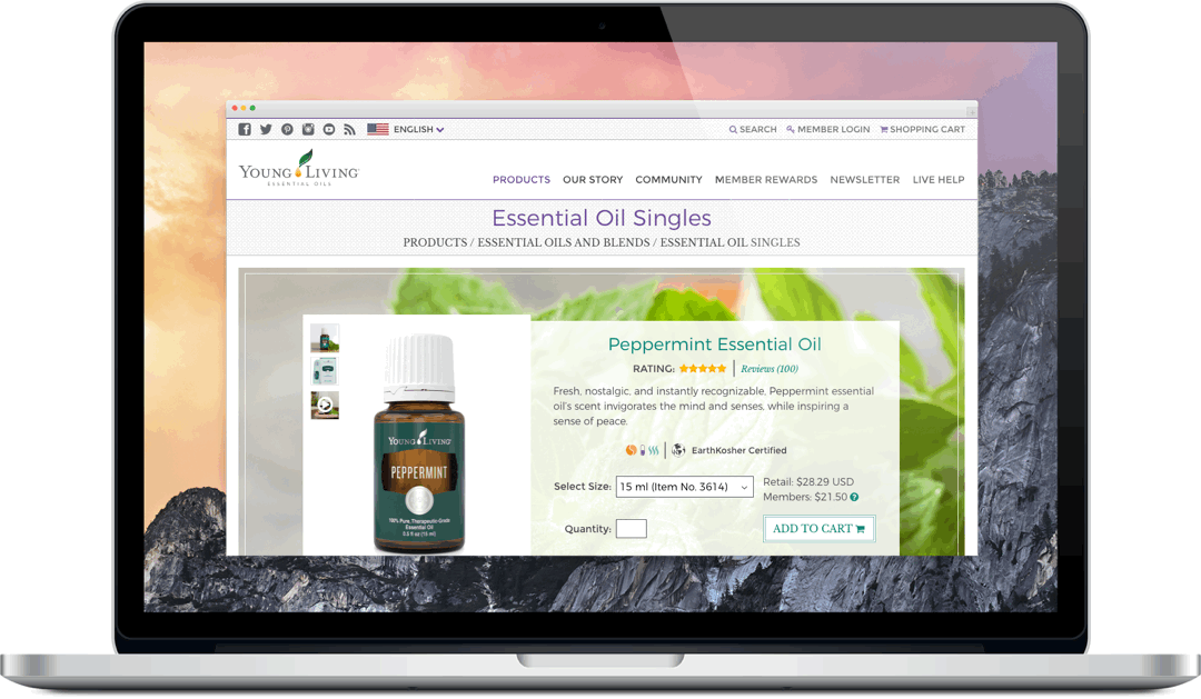 Young Living Essential Oils is a MLM company located in Lehi, Utah, USA. Their website redesign began with product pages that were more SEO friendly and encouraged visitors to purchase product.